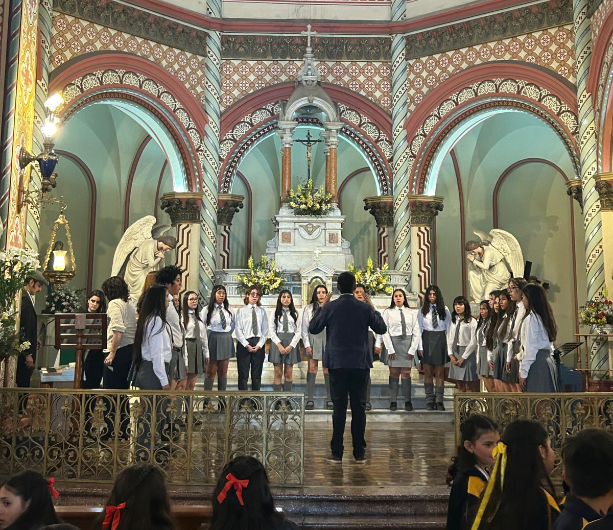 El coro del Liceo Bicentenario Samuel Román Rojas participa en la segunda etapa del Concurso Nacional de coros Crecer Cantando , que tuvo lugar en el Santuario San José, iglesia del colegio María Luisa Villalón de Santiago.